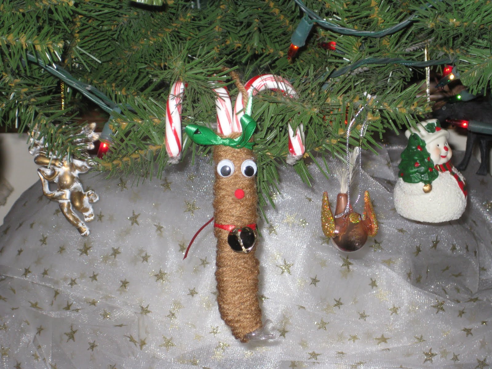 Show more Candy Cane Reindeer Craft Idea for Christmas uses brown pipe cleaners and stick-on googly eyes and a festive bow!