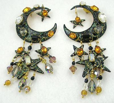 Lunch At The Ritz Earrings Yellow Jing Mask Earrings & Pin Brooch Set Glitzy Designer Statement Collectible Retired LATR Pierced.